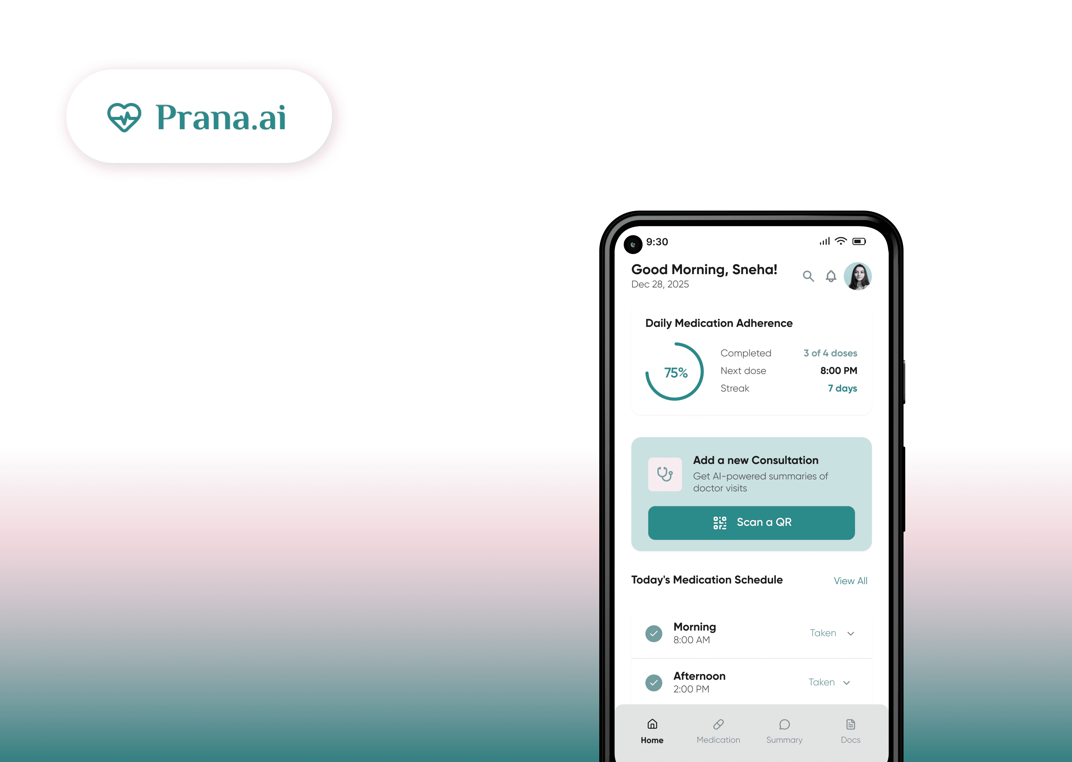 Prana.ai is a healthcare platform designed to help patients better manage their treatment journey—by improving medication adherence, tracking medical inventory, and simplifying doctor consultations through AI-generated summaries.